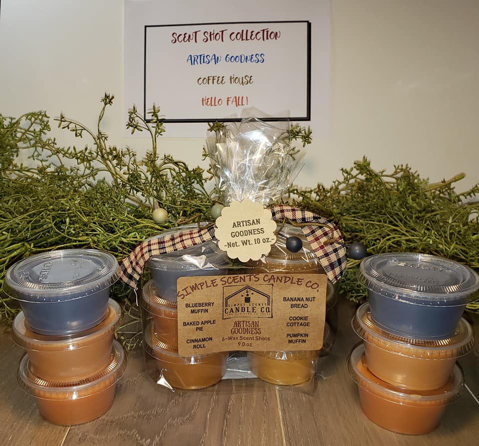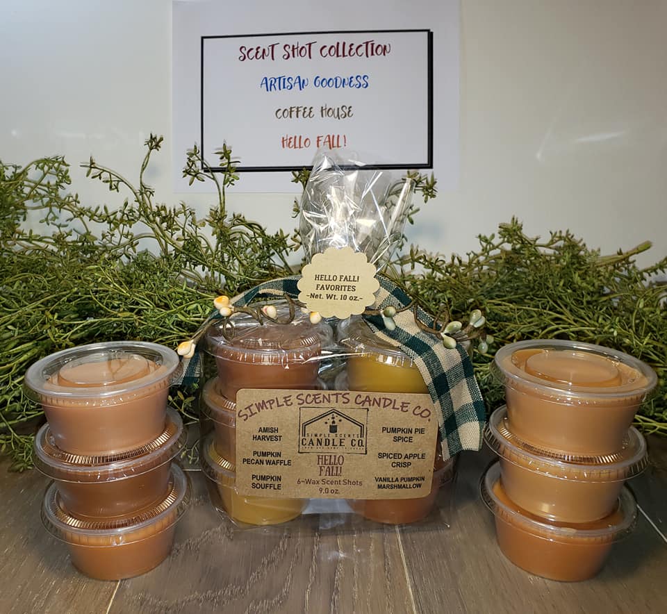 Our unique Scent Shots made their debut at the Kettering Holiday At Home & Waynesville Sauerkraut Festivals. Each set SOLD OUT at both shows! You pick the set and we will send you 6 Top Selling “Scent Shots”. Individually labeled, gathered in a cello bag & tied with homespun.